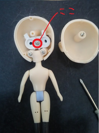 やっと開けた頭から、アイパーツを外します。