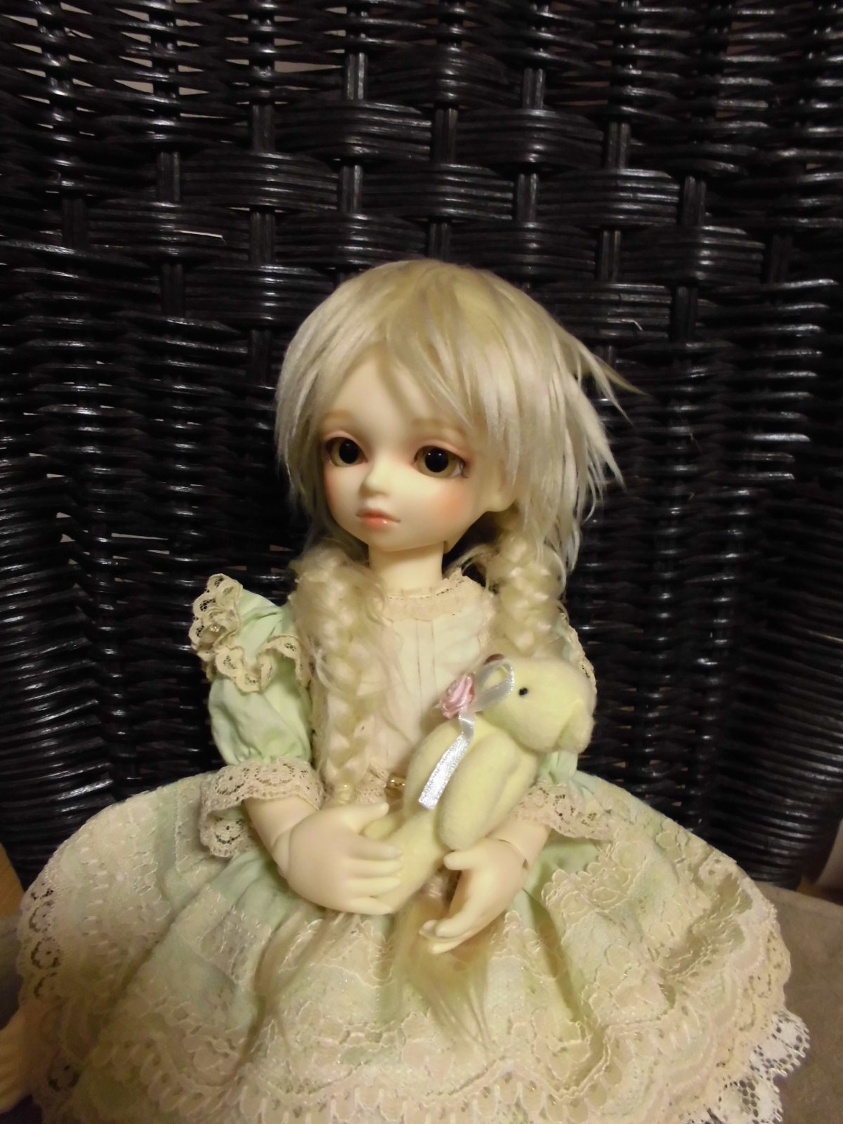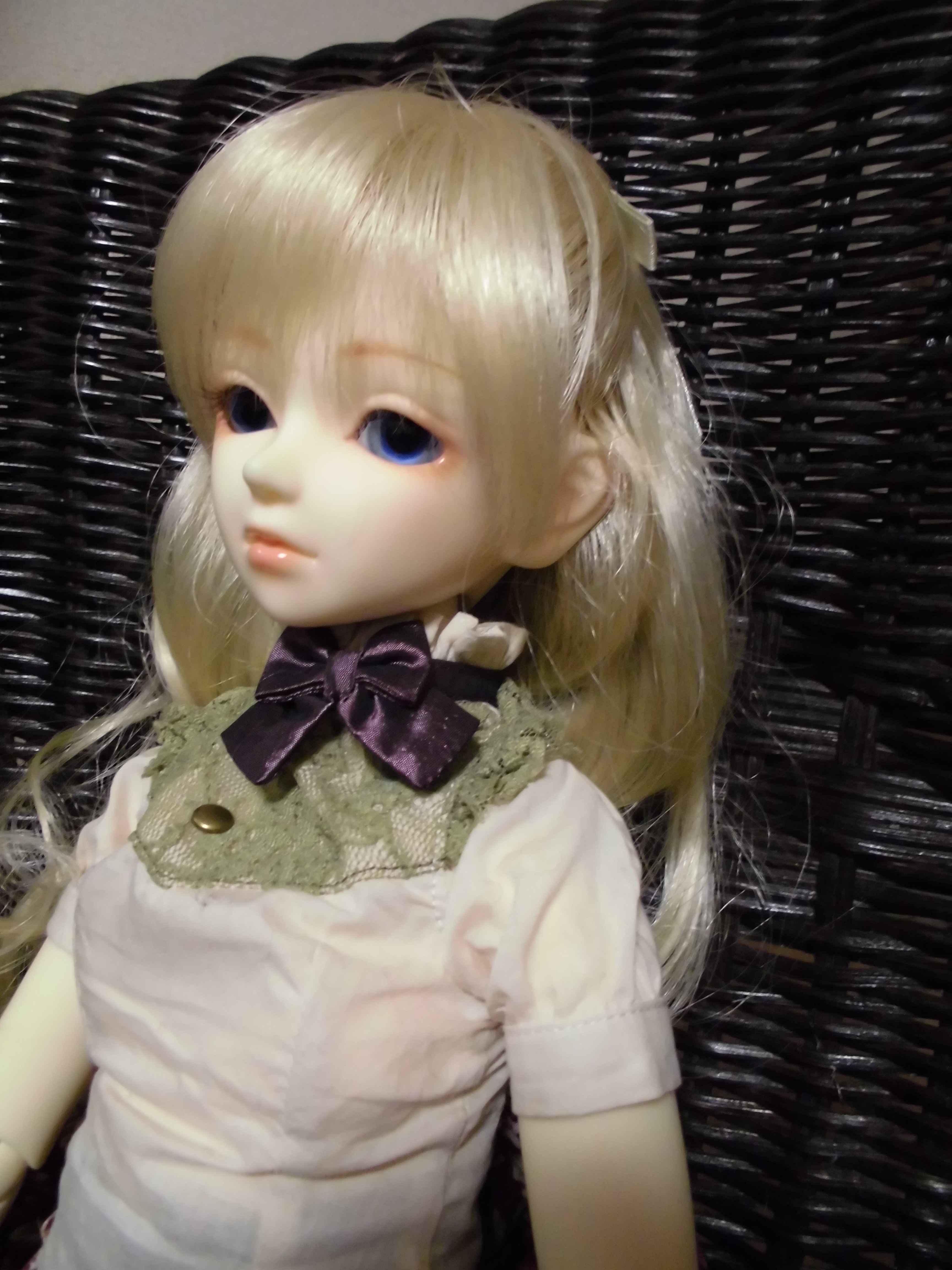 2年ほど、デフォの服装とウィッグのまま飾っていたけれど、先月くらいに、ボディをオビツの少女ボディに変え、ウィッグも変更。